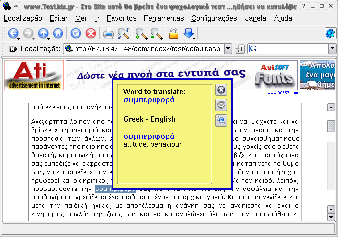 La fonction de KTranslator est de traduire sans perturber l'application en service. Ainsi, lorsque l'utilisateur sélectionne un mot en appuyant sur CTRL clé, KTranslator tente de le traduire le mot et affiche le résultat dans une fenêtre externe.