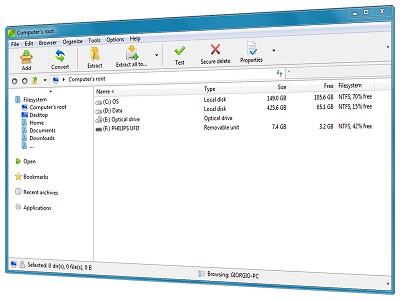 PeaZip est un programme graphique de compression / décompression. Il supporte, entre autres, les formats d'archives 7Z, ARC, BZ2, GZ, PAQ/ZPAQ, PEA, QUAD/BALZ, TAR, UPX, ZIP en création et extraction, et les formats ACE, ARJ, CAB, DMG, ISO, LHA, RAR, UDF et d'autres en extraction seule.